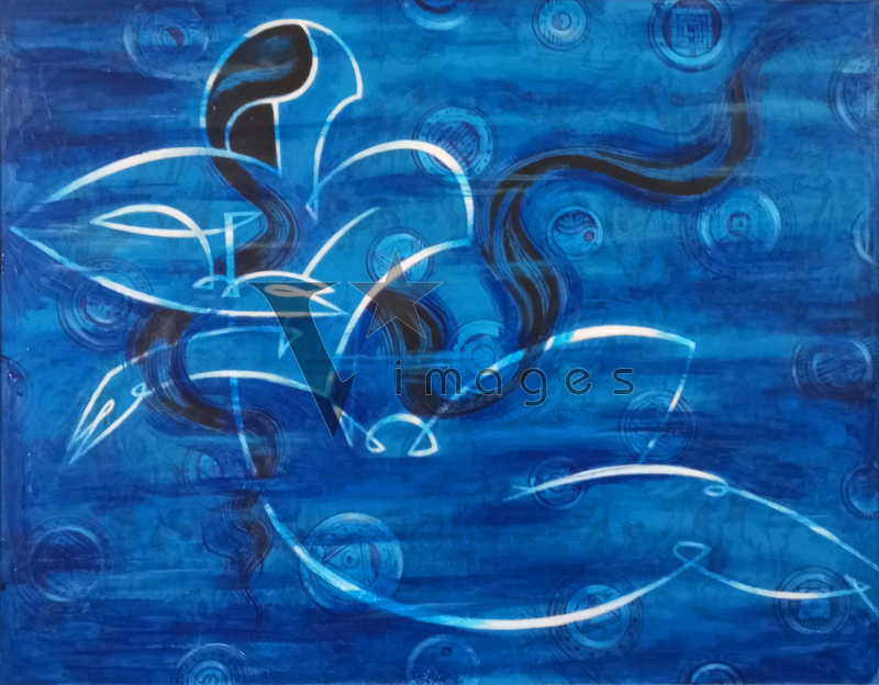 Chất liệu: Acry lic on Canvas ,màu xanh trên vải