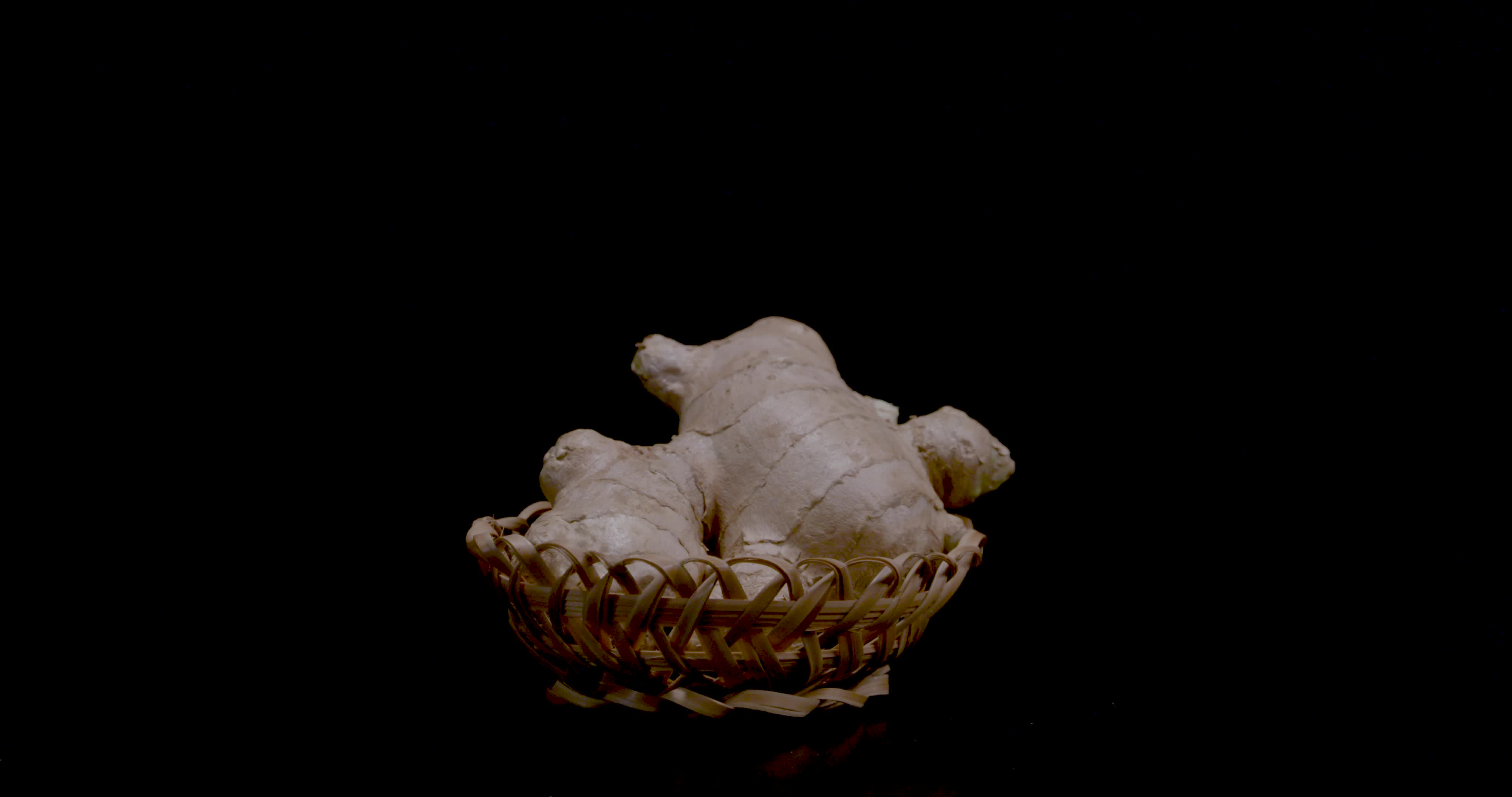Tôm khô trong rổ xoay trên bàn xoay, nền đen