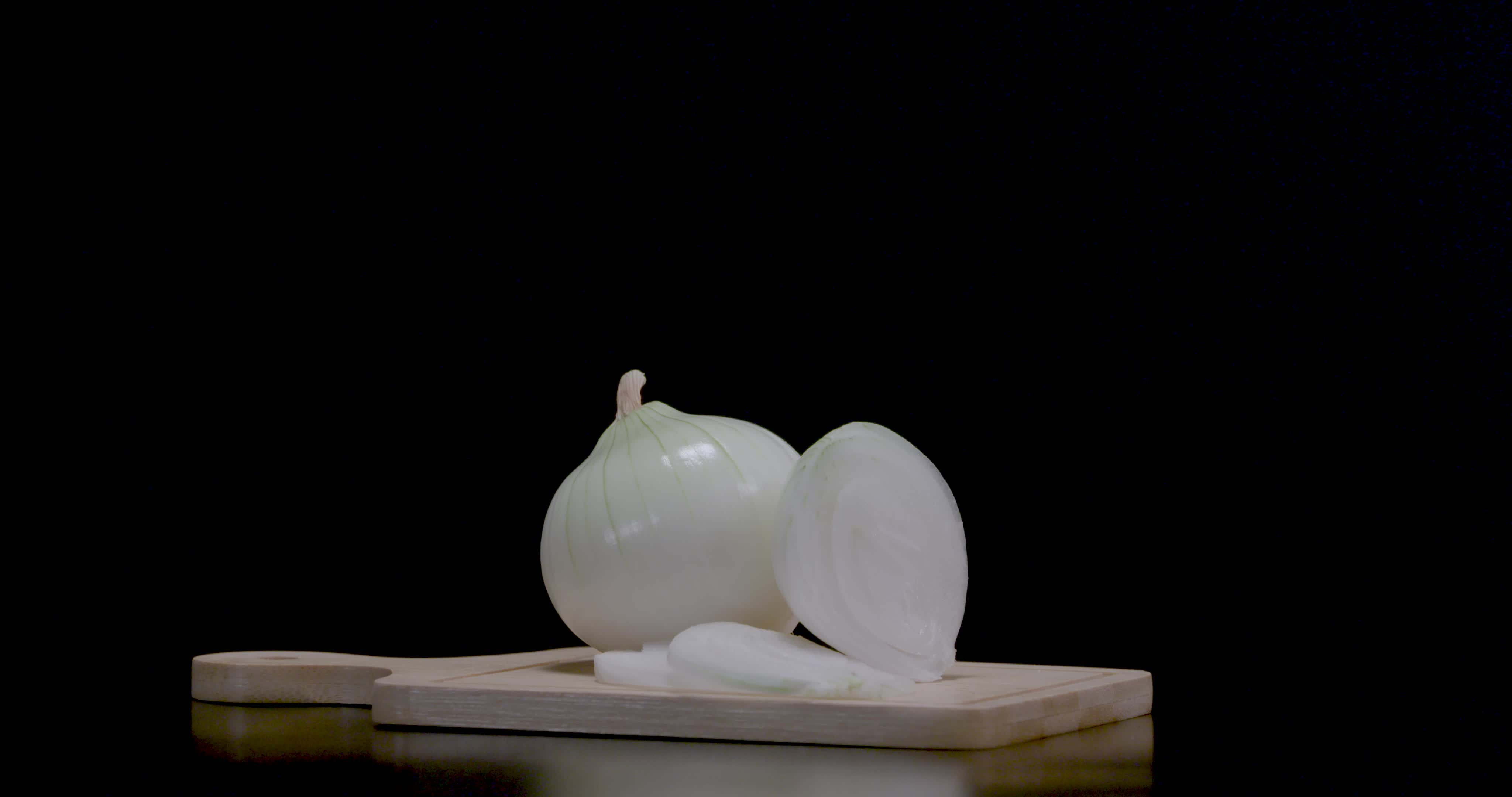 Củ Hành Tây trên Thớt Gỗ trên nền đen