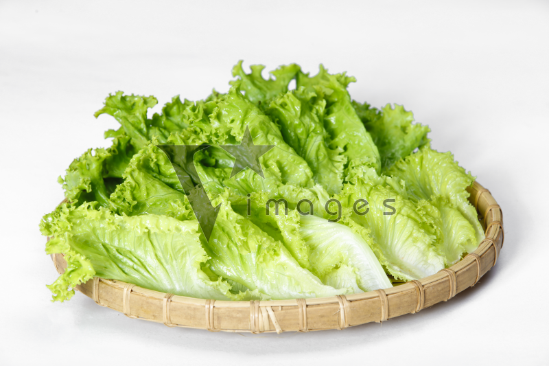 Rau xà lách rửa sạch, Đặt trong mẹc tre. Bị cô lập trên nền trắng
